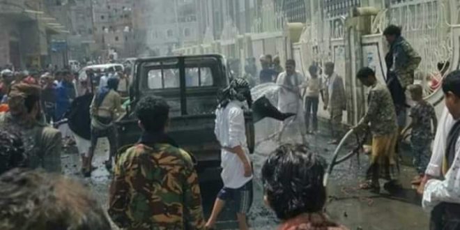 #اليمن #العدوان_السعودي :انفجرت عبوة ناسفة زرعت بأحد الأطقم العسكرية التابعة للمرتزقة، أمام أحد الجوامع بمدينة تعز وقت صلاة الجمعة.وقالت مصادر محلية إن طقما للمرتزقة انفجر بعبوة ناسفة، أمام جامع السعيد بمنطقة عصيفرة ما أدى إلى احتراقه وإصابة أحد المواطنين.وتشهد بعض أحياء مدينة تعز حالة انفلات أمني في ظل سيطرة وانتشار الجماعات المسلحة الموالية للعدوان والمتصارعة فيما بينها.