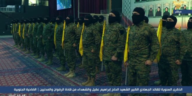إستعراض سرية من مجاهدي المقاومة الاسلامية في الاحتفال الذي يقيمه حزب الله لمناسبة الذكرى السنوية للقائد الجهادي الكبير الشهيد إبراهيم عقيل والشهداء من قادة الرضوان والمدنيين