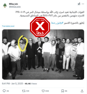 صورة قديمة بالابيض والاسود. وفي وسطها، وقف وزير الدفاع السابق الياس المر مع مجموعة رجال، بينهم الحاج وفيق صفا، الذي “كان اسيرا لدى القوات اللبنانية في المجلس الحربي”، وفقا للمزاعم. وادعى أحد الحسابات ان الصورة تعود لـ”يوم اعادت فيه القوات اللبنانية اسرى حزب الله، بواسطة ميشال المر، في 19-1-1991… وكان صفا واحدا منهم”. وقد اشير اليه بدائرة. منذ يومين، تنتشر الصورة على نطاق واسع، لا سيما في تيك توك، حاصدة مشاركات وتعليقات كثيرة.
