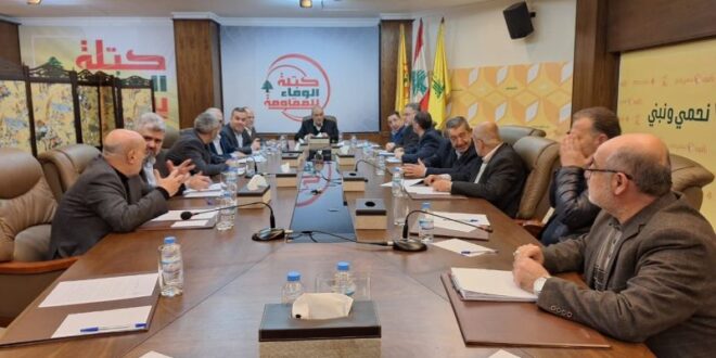 عقدت كتلة الوفاء للمقاومة جلستها الدوريّة بتاريخ 2/10/2025 برئاسة النائب محمد رعد ومشاركة أعضائها، وتداولت في قضايا وشؤون سياسيّة ونيابيّة عدّة تتصل بلبنان وفلسطين والمنطقة وصدر عنها البيان الآتي: