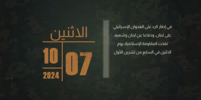 في إطارِ الرَّدِّ على العدوانِ الإسرائيليِّ على لبنانَ، ودفاعًا عن لبنانَ وشعبِه، نفَّذت المقاومةُ الإسلاميَّةُ، يومَ الاثنينِ الواقعِ فيه السابعَ من تشرينَ الأوَّلِ 2024، ثلاثَ عشْرَةَ عمليَّةً عسكريَّةً، استهدفت في معظمِها مستوطَناتٍ، ومواقعَ، وثكناتٍ، وتجمُّعاتٍ تابعةً لقوّاتِ العدوِّ الإسرائيليِّ عندَ الحدودِ اللبنانيَّة ـ الفلسطينيَّة، باستخدامِ الصواريخِ والقذائفِ المدفعيَّة.