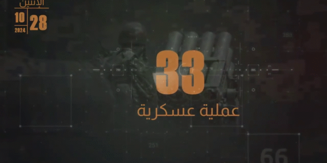 في إطارِ الرَّدِّ على العدوانِ الإسرائيليِّ، ودفاعًا عن لبنانَ وشعبِه، نفَّذت المقاومةُ الإسلاميَّةُ، يومَ الإثنين الواقعِ فيه الثامنَ والعشرينَ من تشرينَ الأوَّلِ 2024، ثلاثًا وثلاثينَ عمليَّةً عسكريَّةً، استهدفت في معظمِها مستوطَناتٍ، ومواقعَ، وثكناتٍ، وتجمُّعاتٍ تابعةً لقوّاتِ العدوِّ الإسرائيليِّ عندَ الحدودِ اللبنانيَّة – الفلسطينيَّة، باستخدامِ الصواريخِ والقذائفِ المدفعيَّةِ والمسيَّراتِ الانقضاضيَّة.