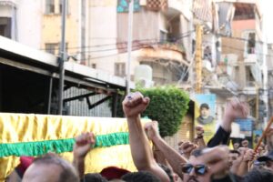 حزب الله استخدم التشييع ليؤكد أن “المقاومة” مستمرة ولن تتراجع، وأن اغتيال قادتها هو “جزء من الحسابات الخاطئة للعدو”.