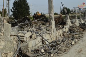 ”يستقوون على الحديد، على الجرافة، وعلى الكميون.. لكنهم أعجز من أن ينالوا من عزيمتنا. غبار القصف سينجلي، والآليات ستُستبدل، أما نحن.. فباقون هنا، متجذرون كأشجار الزيتون.”