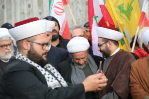 بدعوة من لقاء الأحزاب والقوى والشخصيات الوطنية اللبنانية وتجمع العلماء المسلمين، نُظمت وقفة تضامنية حاشدة أمام السفارة الإيرانية في بيروت تحت شعار “سفير الجمهورية الإسلامية في بيته وبلده وبين أهله”. جاءت هذه الوقفة استنكاراً وتنديداً بقرار وزير خارجية حزب القوات يوسف رجي بحق السفير الإيراني محمد رضا شيباني، ورفضاً للسياسات الداعمة للعدوان الأمريكي الصهيوني، وتأكيداً على موقع إيران في قلوب الوطنيين.