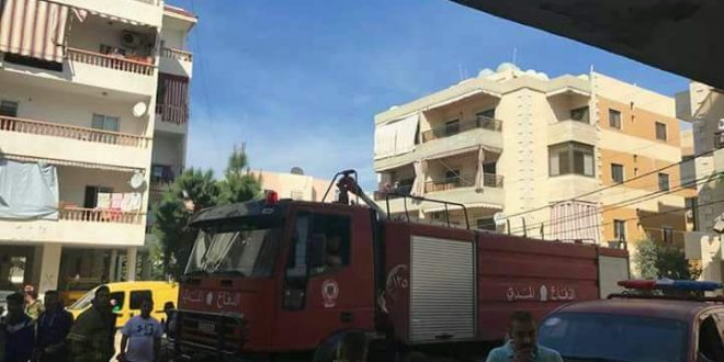 أخمد عناصر من الدفاع المدني حريقاً شب داخل شقة تقع في الطبقة الثانية من مبنى سكني في العباسية-صور.