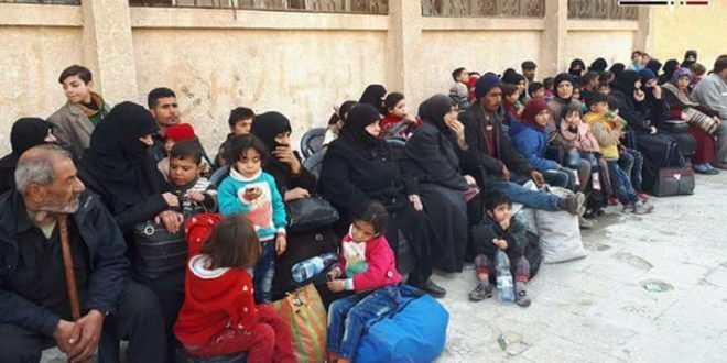 صور لتأمين وحدات من الجيش السوري خروج عدد من عائلات الغوطة الشرقية لمدينة دمشق عبر الممر الآمن في مخيم الوافدين.