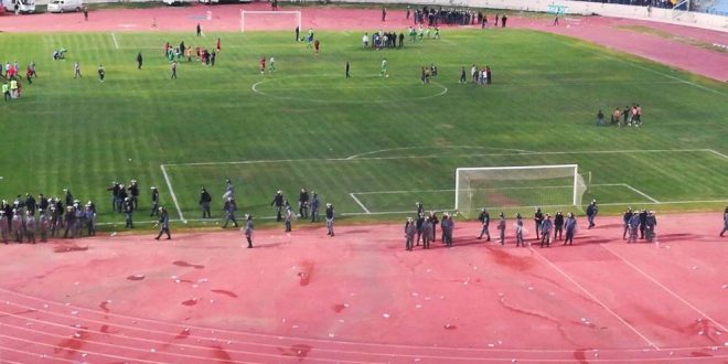 اعمال شغب على ارض ملعب المدينه الرياضية والقوى الأمنية تتدخل