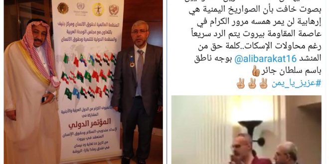 بحضور اشخاص من مصر والاردن والسعودية ولبنان واثناء كلمة احد الشخصيات السعودية وصف بكلمته ان الحوثيين في اليمن ارهابيين وادان اطلاق الصواريخ من اليمن على السعودية ووصفها بصواريخ ارهابية واشاد بولي العهد السعودي محمد بن سلمان ووصفه براعي السلام في المنطقة واصفاً كل خط المقاومة بالارهاب