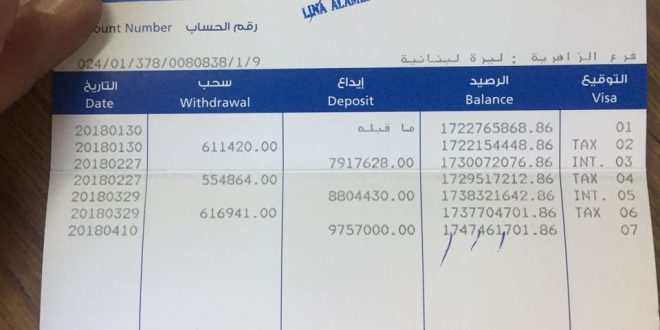 حساب بقيمة مليار وسبعماية مليون ليرة