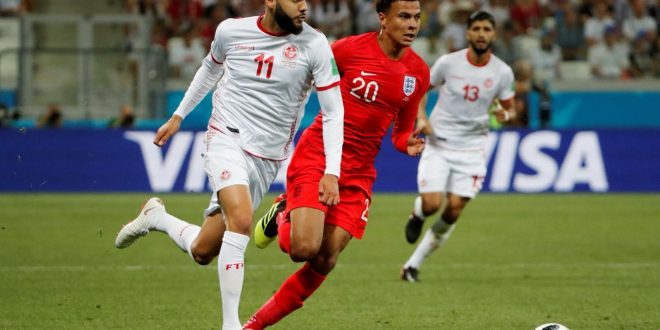 ودخل المنتخب التونسي المباراة بشكل سيئ وبدا الارتباك واضحا على لاعبيه خاصة على مستوى الدفاع، وهو ما كلف الفريق هدفا في الدقيقة 13 عن طريق هاري كين.