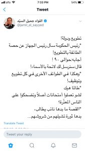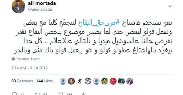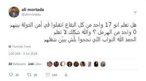 غرّد الاعلامي علي مرتضى حول اعداد المقبولين في مباريات امن الدولة من المسلمين الشيعة في بعلبك الهرمل منتقداً العدد القليل بالنسبة لباقي المحافظات ثم اتبع تغريدته بدعوة للاعتراض على احوال البقاع تحت هاشتاغ #من_حق_البقاع ، الهاشتاغ لاقى رواجاً كبيراص ليصير الى الترند الاول في لبنان، وكان اللواء جميل السيد قد غرّد عن الموضوع واضعاً المباريات بخانة التعيينات التي يقرها رئيس الحكومة