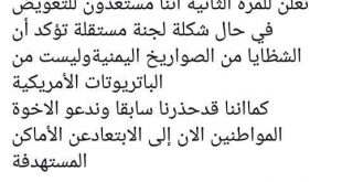 #السعودية #اليمن #العدوان_على_اليمن أبدى رئيس اللجنة الثورية العليا اليمنية محمد علي الحوثي استعداد اليمن لتعويض أي سعوديين سقطوا قتلى أو جرحى جراء الصواريخ اليمنية التي أطلقت على مناطق متعددة ليل الأحد، شريطة تشكيل لجنة مستقلة وتأكيدها أن شظايا الصواريخ اليمنية وليس صواريخ الباتريوت الأمريكية هي من تسببت بمقتل المدنيين …