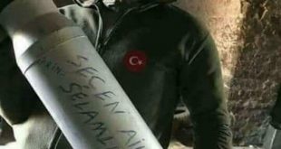تناقل ناشطون أكراد صورة لجندي تركي مشارك في عملية “غصن الزيتون” ضد “الوحدات الكردية” في مدينة عفرين في ريف حلب الشمالي الغربي، وهو يحمل قذيفة مدفعية كُتب عليها “اختاري أي عائلة في عفرين وألقي التحية عليها”. وقالوا إن هذه الصورة تقدم دليلا موثقا على أن استهداف جيش العدوان التركي للمدنيين …